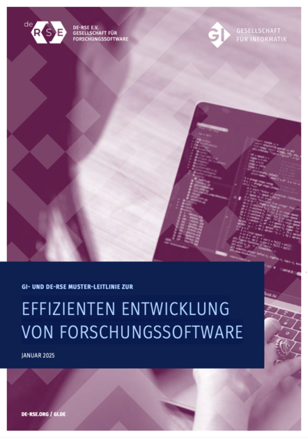Der von de-RSE und der Fachgruppe RSE der GI gemeinsam geführte Arbeitskreis “RSE Software Development Guideline” hat eine Musterleitlinie “GI- und DE-RSE Muster-Leitlinie zur effizienten Entwicklung von Forschungssoftware” erarbeitet und veröffentlicht. Die Musterleitlinie ist nunmehr verfügbar unter https://doi.org/10.18420/2025-gi_de-rse.